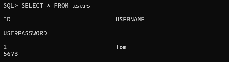 userpassword VARCHAR(30) NOT NULL