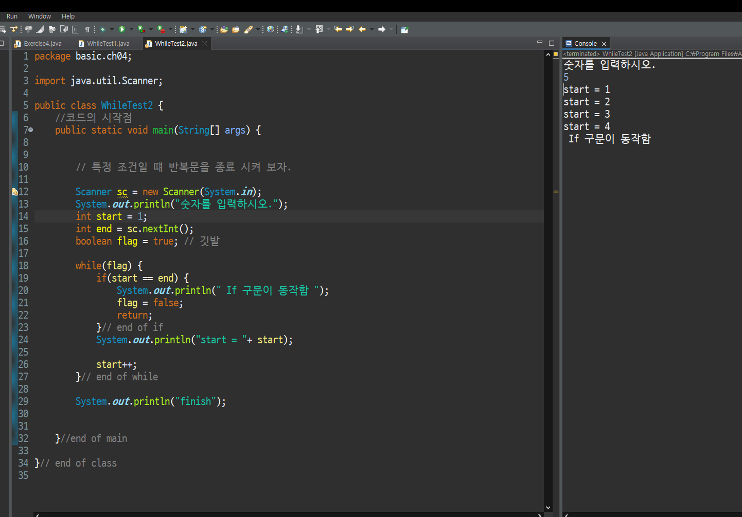 ● 조건이 맞지 않으면 반복하던 수행을 멈추게 됨