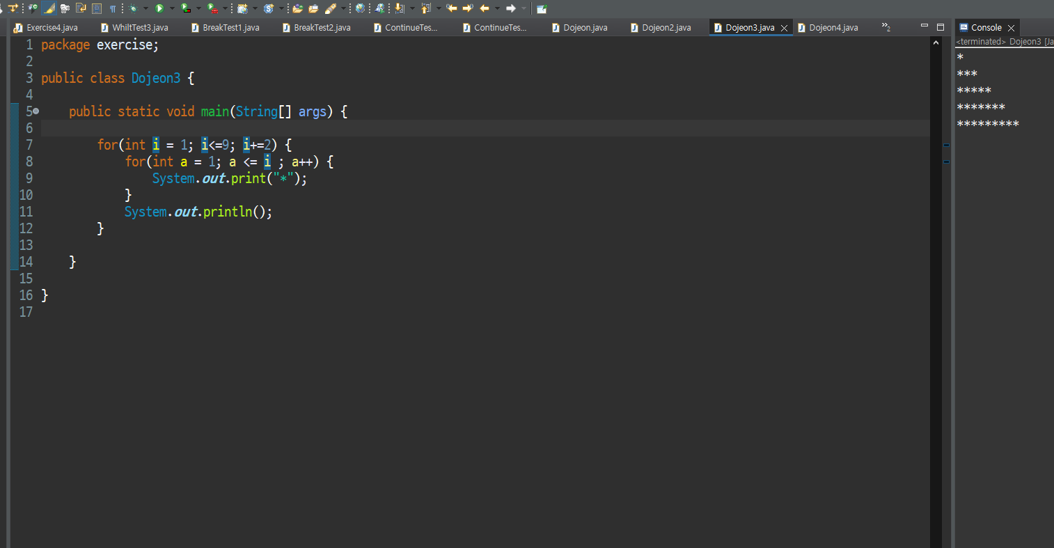 3. 별표 찍기 (이중 for 구문을 활용한 코드를 작성해주세요)