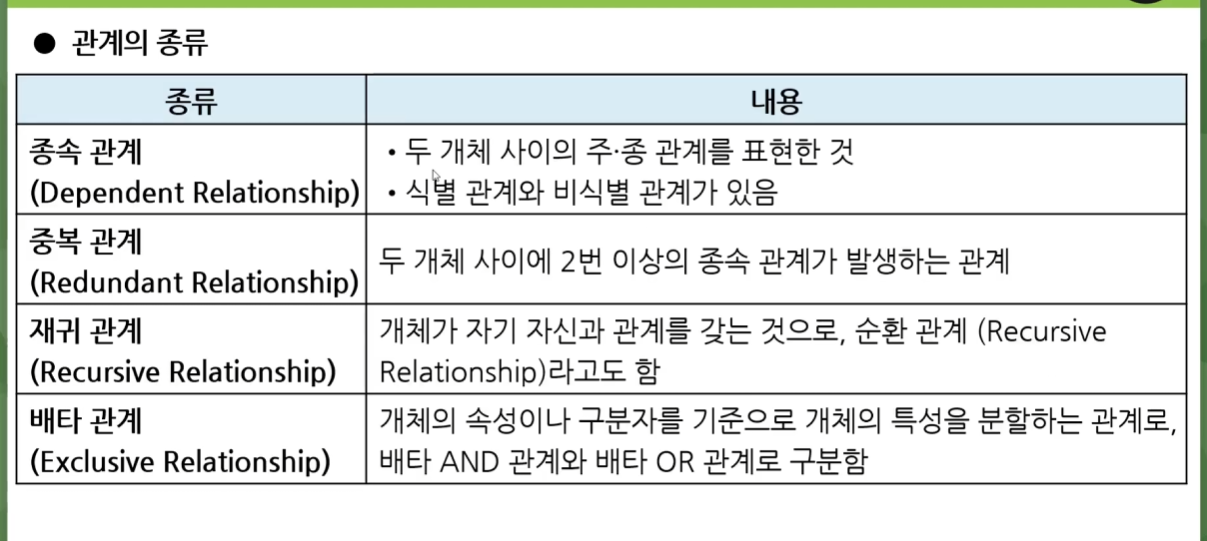관계는 개체와 개체 사이의 논리적인 연결을 의미함