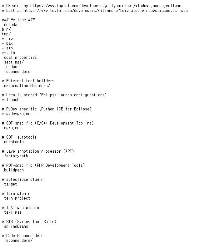 이러한 사이트가 나오는데 전체를 선택해서 .gitignore 텍스트에 붙여 넣기