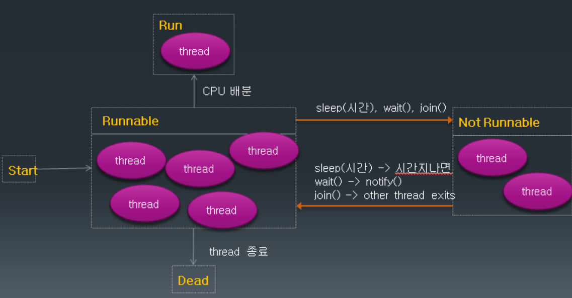 - 쓰레드의 실행시 쓰레드 상태라는 개념을 알아 보자.