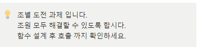 함수란 뭘까? 함수(Function)는 프로그래밍에서 특정 작업을 수행하는 코드의 집합으로, 입력을 받아 처리 후 결과를 반환할 수 있습니다. 함수는 코드의 재사용성을 높이고, 프로그램의 구조를 체계적으로 관리할 수 있게 도와줍니다. ● 하나의 기능을 수행하는 일련의 코드 묶음이다. ● 구현된(정의된) 함수는 호출하여 사용하고 호출된 함수는 기능이 끝나면 실행의 제어가 반환된다. ● 함수로 구현된 하나의 기능은 여러 곳에서 동일한 방식으로 호출되어 사용될 수 있다. 함수 설계하기 함수는 이름, 파마메터(매개 변수), 반환 값, 함수 몸체(body)로 구성 함수 사용하기( 사용하기는 모양 맞추기)
