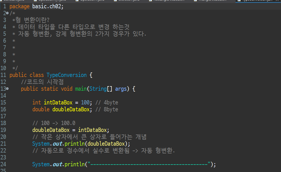 항(Operands)과 연산자(Operators) 연산 과정에서 사용되는 데이터나 값을 항(Operands)이라고 합니다. 하나 이상의 항을 사용하여 특정 연산을 수행하는 기호를 연산자(Operators) 라고 합니다. 대입 연산자 (Assignment Operator) : ‘ = ‘ 대입 연산자는 특정 값이나 다른 변수의 결과를 변수에 할당(대입)하는 데 사용됩니다. 대부분의 이항 연산자 중에서 실행 우선순위가 가장 낮아서, 대부분의 연산이 이루어진 후에 마지막으로 값이 할당됩니다. (연산에 순서는 오른쪽에서 왼쪽으로) 기본 형태는 왼쪽 변수 = 오른쪽 표현식(값, 변수, 또는 계산식)입니다. 부호 연산자 : ‘ +, - ‘ 부호 연산자는 변수의 부호를 변경하거나 유지하는 단항 연산자입니다. 연산자는 ..