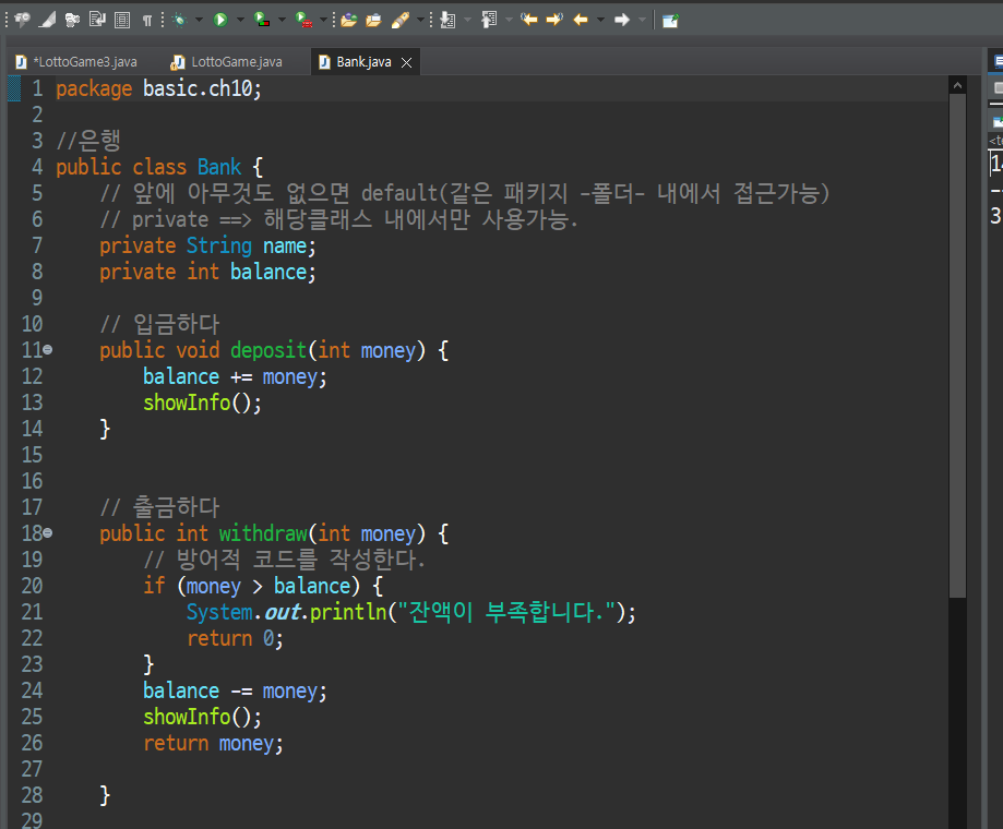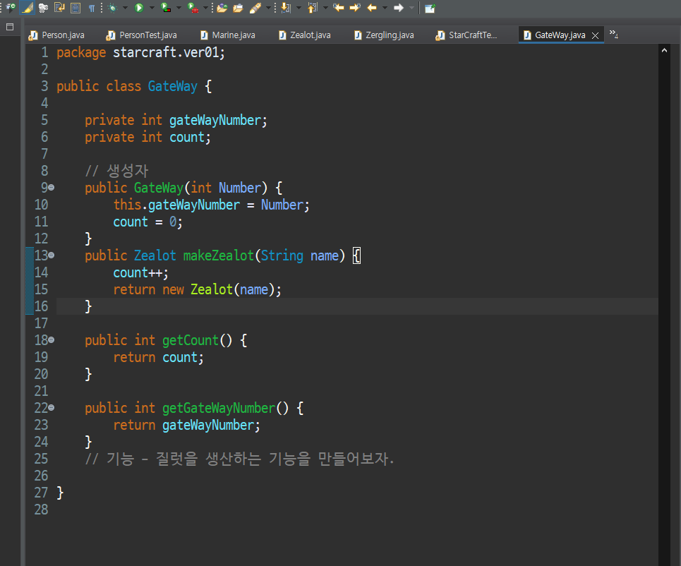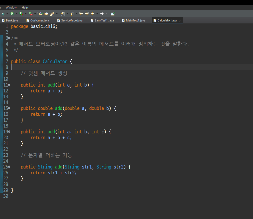 💡 학습 목표 메서드 오버로딩에 대한 개념을 이해하자. 1. 메서드 오버로딩. 메서드 오버로딩(Overloading)은 같은 이름의 메서드를 여러 개 정의하는 것을 말합니다. 이때 메서드의 시그니처(signature), 즉 메서드 이름과 매개변수의 타입, 개수, 순서가 서로 달라야 합니다. 메서드 오버로딩을 사용하면 같은 기능을 하는 메서드들을 하나의 이름으로 통일할 수 있어 코드의 가독성을 높일 수 있습니다. 메서드 오버로딩을 통해 기존 코드를 간략화 하여 가시성을 높여 보자. package starcraft.ver02; public class Marine { private String name; private int power; private int hp; public Marine(String nam..
